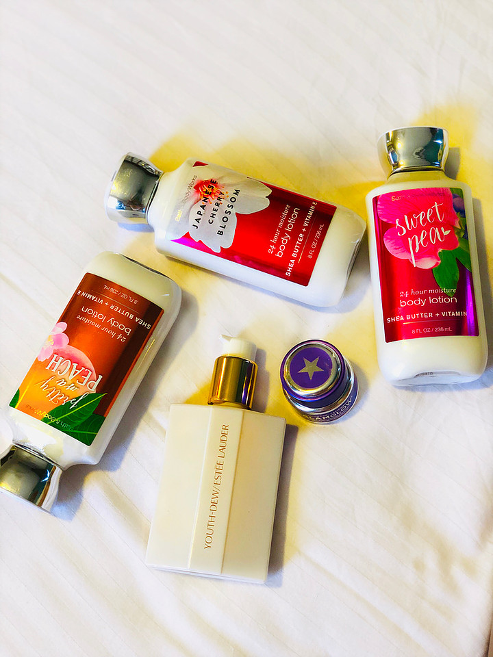 These are one of my favourite skin moisturisers, from Bath and Body Works. I have also added in my Youth Dew by Estee Lauder. All these moisturisers are comprised of Shea butter, coconut oil and Vitamin E.