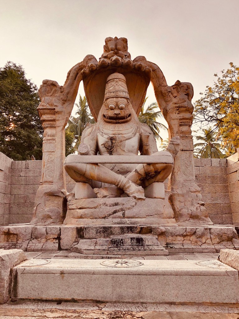 The Lakshmi Narasimha statue is one of the most imposing, grand sculptures found in the ruins of Hampi. The most fascinating thought for me here was how vast and rich the Vijaynagara empire rule was. Every one kilometer of Hampi, has an architectural heritage from the early 1500’s. This sculpture is that it is the largest monolith statue in Hampi, and is not usually very crowded. To add to this happiness, there were a lot of monkeys hanging around the this gigantic stone structure. Built in the year 1528 A.D. constructed during the rule of Krishnadevaraya, one of the greatest rulers of the Vijayanagara takes me back in time.