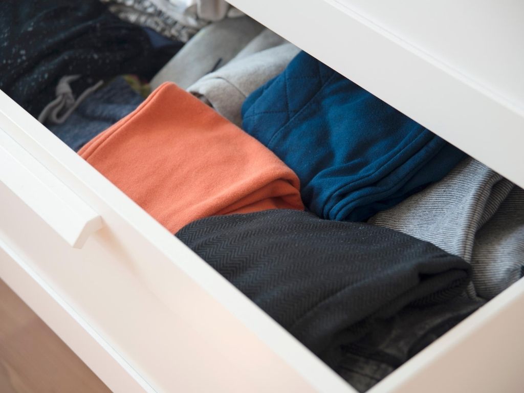 Use drawers to store bulky, heavy clothes that use up a lot of space in your wardrobe.