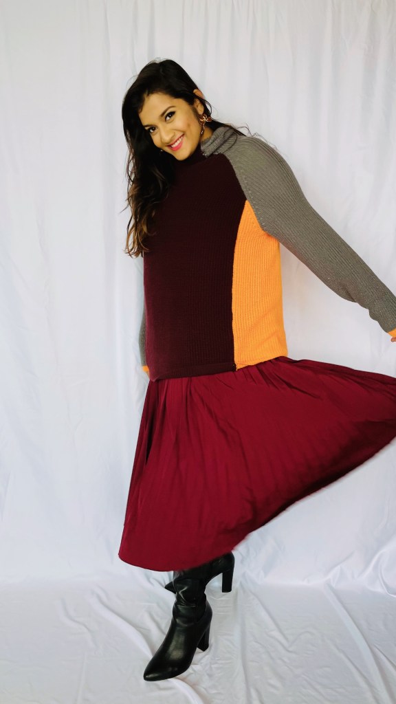 Easy and breezy, one of the easiest ways to put together a sweater with a skirt to make it look so chic!