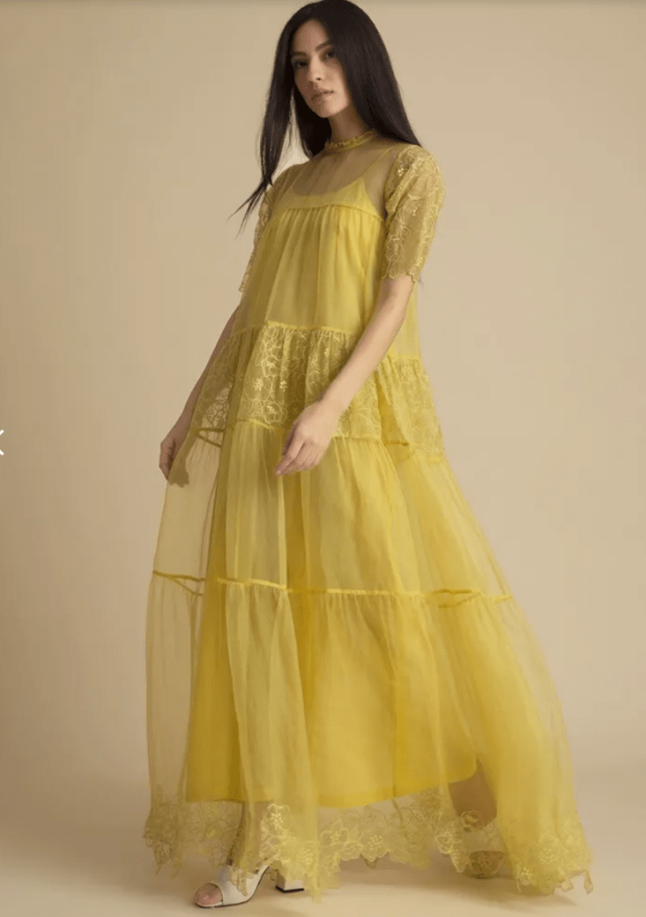 The Loom, may not be on the popular it’s “designer” list, but this dress should definitely be on your “bucket list”! I love how the Organza has been gently crafted in a subtle tone to overlay the dress. Isn’t this dress just perfect for a fancy lunch out with your friends?