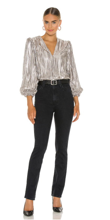 The previous look could be more for a casual evening out, this metallic blouse is the perfect fit for one of those party evenings!
