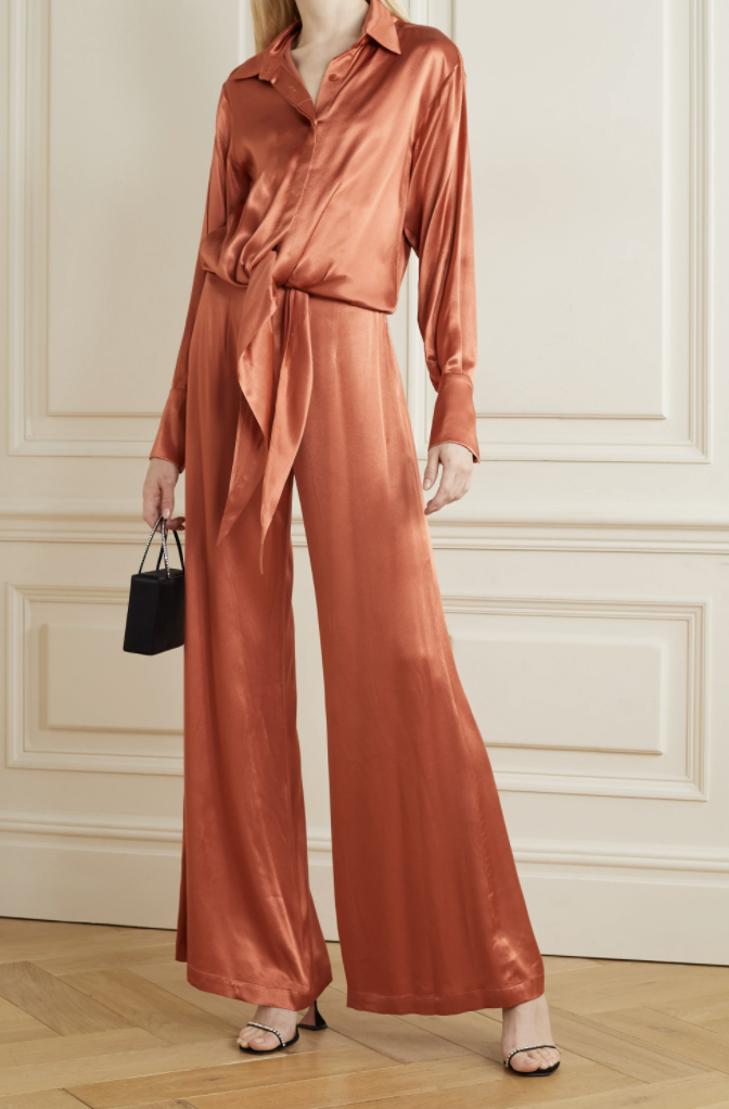 For some of us spring summer looks our clothes need to be curated with relation to local weather. If you live in a place in Europe, where the weather in spring can still be relatively chilly, this is a really good pic. Satin blouses, like organza have been in for a while but it is for a reason. It instantly elevates a Spring look and makes you look sophisticated and classy.