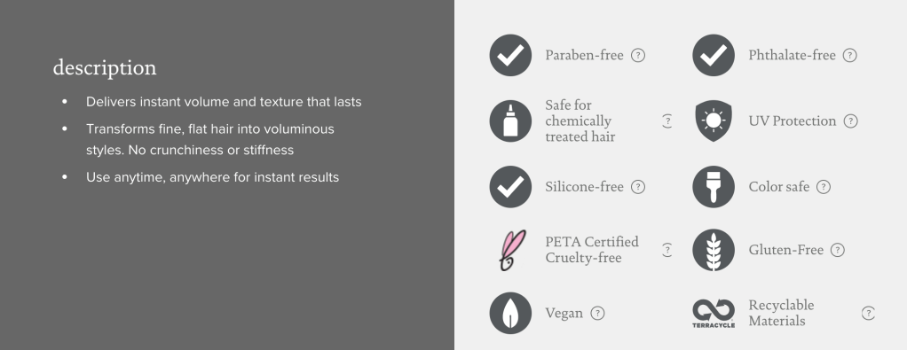 ” A styling spray that creates instant volume and texture that’s almost as light as air for big, lasting results on dry haiR “
