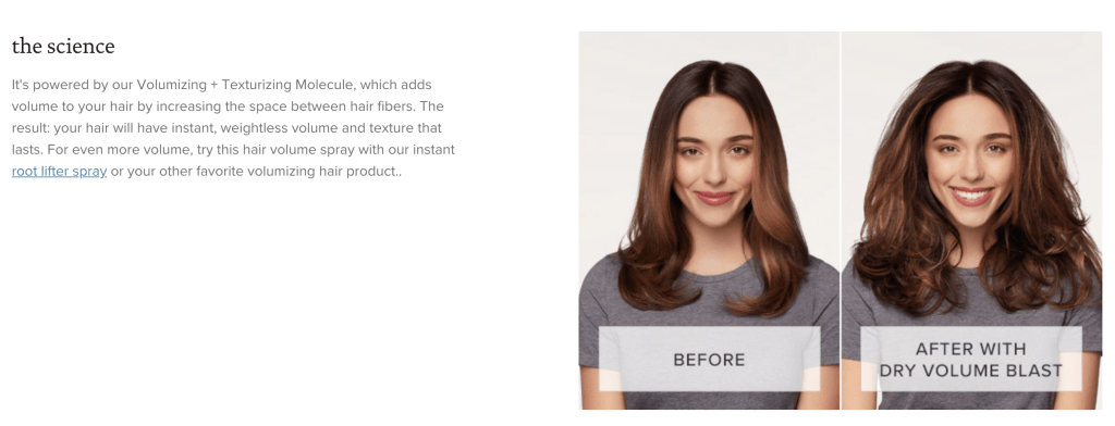 I also want to talk about the science behind which this while voluminizing and texturizing spray works wonders. Here below you can see what the website has shared about the way this works with your hair, and also a photograph showing a before and after. Product reviews by real people using real products are important for the end consumer to make a good decision. A lot of the brands out there post before and after photos, but not many of them are realistic and the real product would not give results specified.