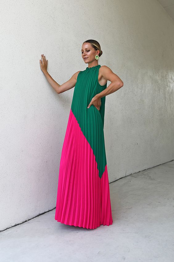 Maxi dresses are perfect for summer for those women who love long dresses and especially when it is color blocked. This color combination looks so stunning for a holiday in Greece!