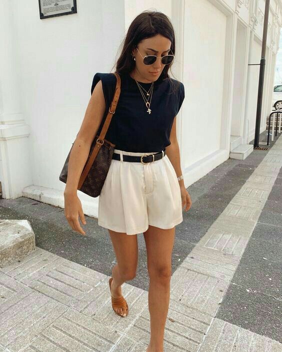 This beautiful outfit with a pair of white shorts and a black cropped up is something that I love a lot. Try to pair this up with different colors that you have in your wardrobe!