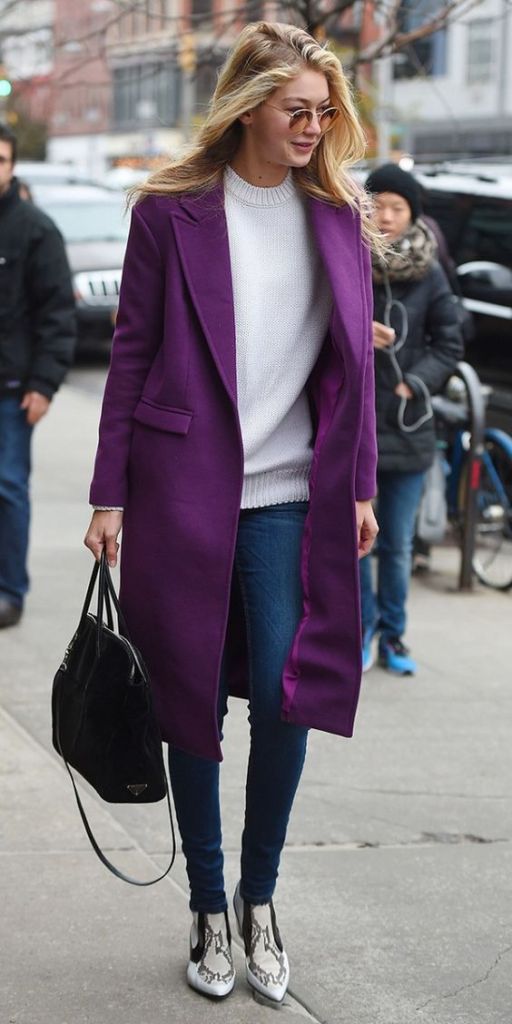 Purple is my latest obsession and I have legit bought so much purple in the last few months. This purple coat that Gigi Hadid is wearing, is so feminine, beautiful and does not fail to look amazing!!