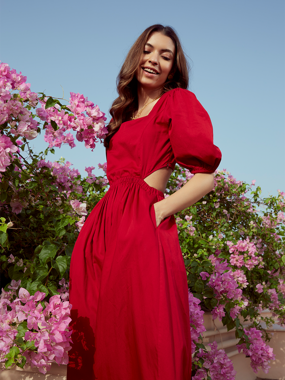This cut out maxi dress is beautiful, bold and red and is everything you need for a perfect day out!