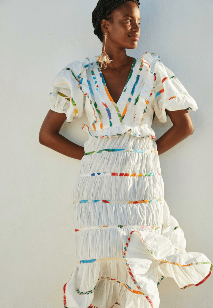 Nothing like your whites, and here’s a gorgeous dress with tints of color to prove it!